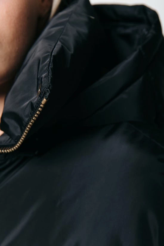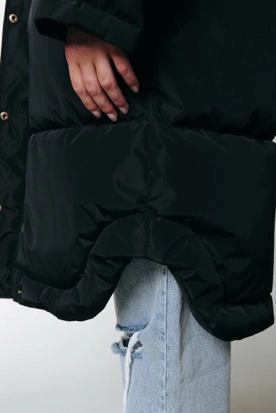 Puffer jacketOversized fitMidi lengteLange mouwKnoopsluitingSteekzakkenZowel ritssluiting als drukknoopsluiting100% polyester, WovenNon stretch stofStomerij reinigingModel is 1.70m en draagt S