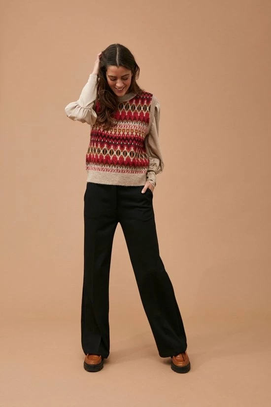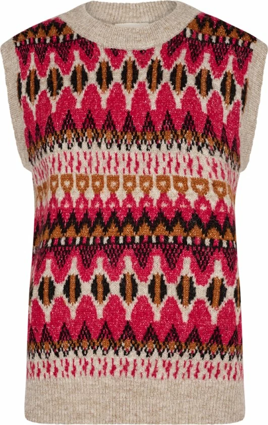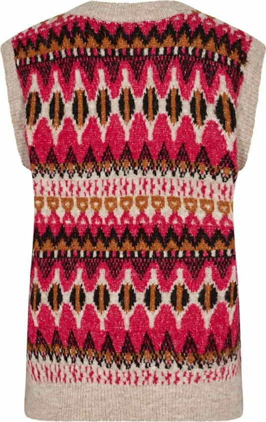 Deze mooie spencer is van het merk Freequent, de spencer heeft een ronde hals en noorse print. Maak je outfit af met een leuke blouse en stoere jeans.