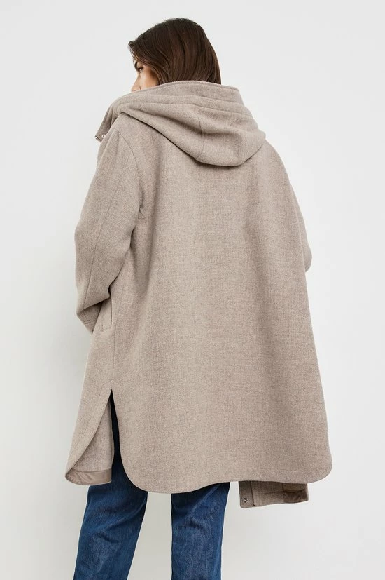 Van deze mantel van hoogwaardige wol krijgt u alleen bij de aanblik ervan zin in het maken van lange wandelingen! Laat u verleiden door het natuurzuivere materiaal.