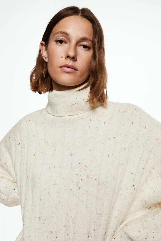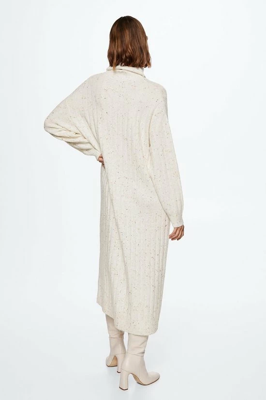 Oversized vallende jurk van Mango met lange mouwen en een colkraag. Deze jurk is grof gemeleerd en de totale lengte is 117 cm bij maat S.