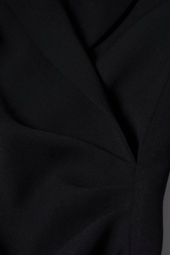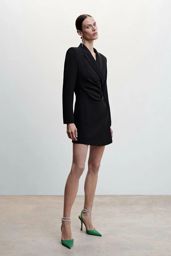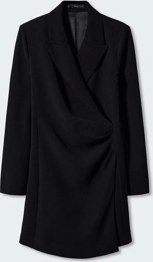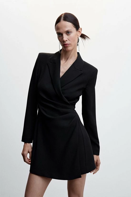 Korte jurk van Mango. Dit model heeft een overslaghalslijn en lange mouwen. De jurk sluit met een blinde rits aan de achterkant. De totale lengte is 81 cm bij maat S.