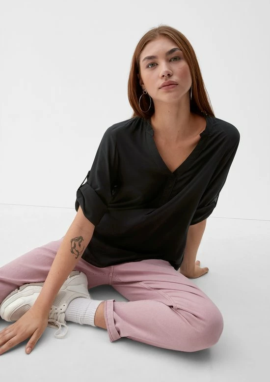 Blouse, 3/4 Mouw, Turn Up Sleeve, Regular Fit, Effen, V-Neck, Verkrijgbaar In 2 Kleuren