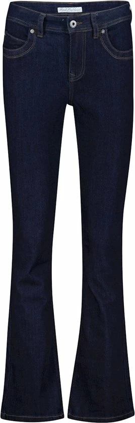 Flared jeans van Red Button. Dit 5-pocket model heeft een stoere stone wassing. De jeans heeft een regular taille en sluit met een knoop,- rits combinatie