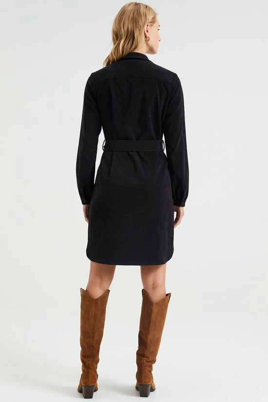 Een regular fit overhemdjurk van corduroy met een strikceintuur. Het korte model heeft een klassieke kraag, een knoopsluiting en lange mouwen.