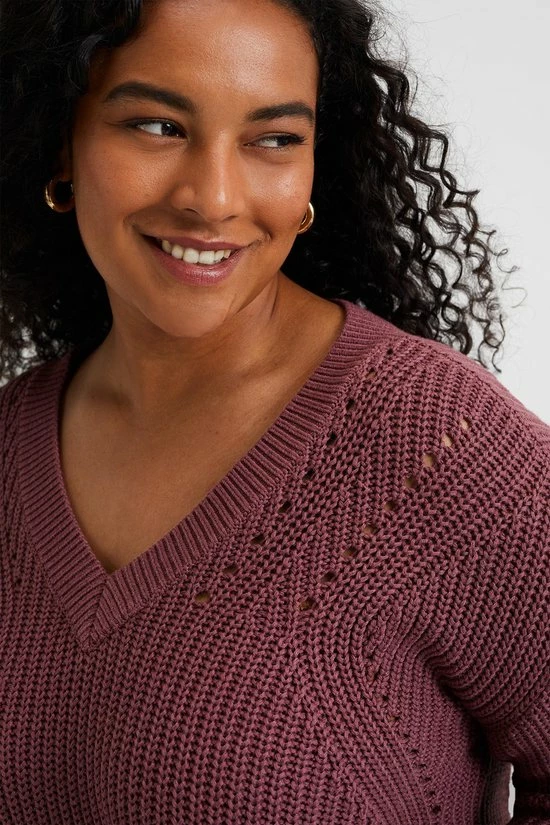 Een regular fit grofgebreide trui van een katoenmix met een V-hals en lange mouwen.